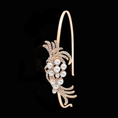 Chic pearl bridal headband on a rose gold finish. A stunningly intricate, unique design with an embellished sparkling crystals and ivory pearls side piece for a romantic look!