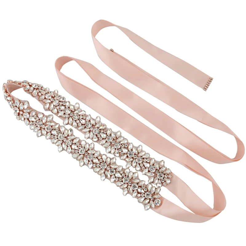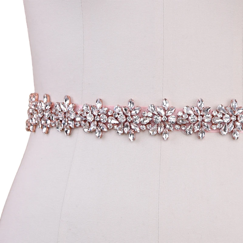 Athena Bejewelled Bridal Belt. A beautiful statement sash belt with amazing sparkle and shine. Clear cut crystal embellishment in a linear floral motif on a wide rose pink satin ribbon!