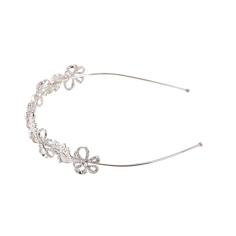 The Athena Chic Crystal Treasure Headband is a perfectly exquisite crystal and pearl bridal tiara styled on a delicate floral design. Pave set crystals enhance the flowers and sprays of simulated pearls and pave set leaves complete this sweet headband, finished in a high shine silver finish. This sparkling headband will brighten up any Brides special day!