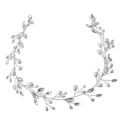 Athena Collection – Classic Crystal vine is composed of sparkling crystals and luxury pearls on a silver finish hair vine. A chic and luxurious bridal hair vine. An elegant trailing vine style bridal vine accented with lustrous crystal and pearl vines…can be worn across the forehead in a Bohemian style.