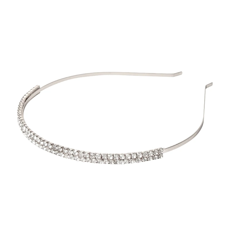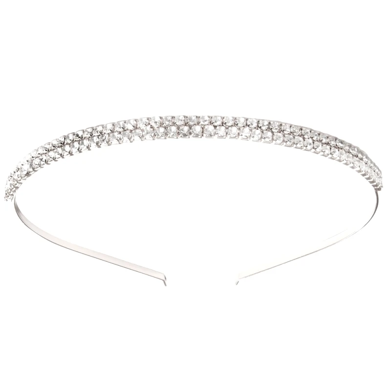 Athena Collection Double Row Crystal bridal alice band set with a dual row of sparkly, clear crystals in a precise pattern along the length of the silver finish band!