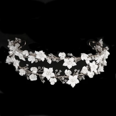Stunning classic and elegant double row tiara/low crown set with ivory pearls forming a beautiful flower design and detail. The silver finish adds to the absolute sparkle that this crown provides for that elegant feel! This low crown is an unusual design that can be worn as a crown or headband and suits various different hairstyles. She really is a beautiful addition to your bridal gown, and gives a lovely elegant feel to your bridal attire.