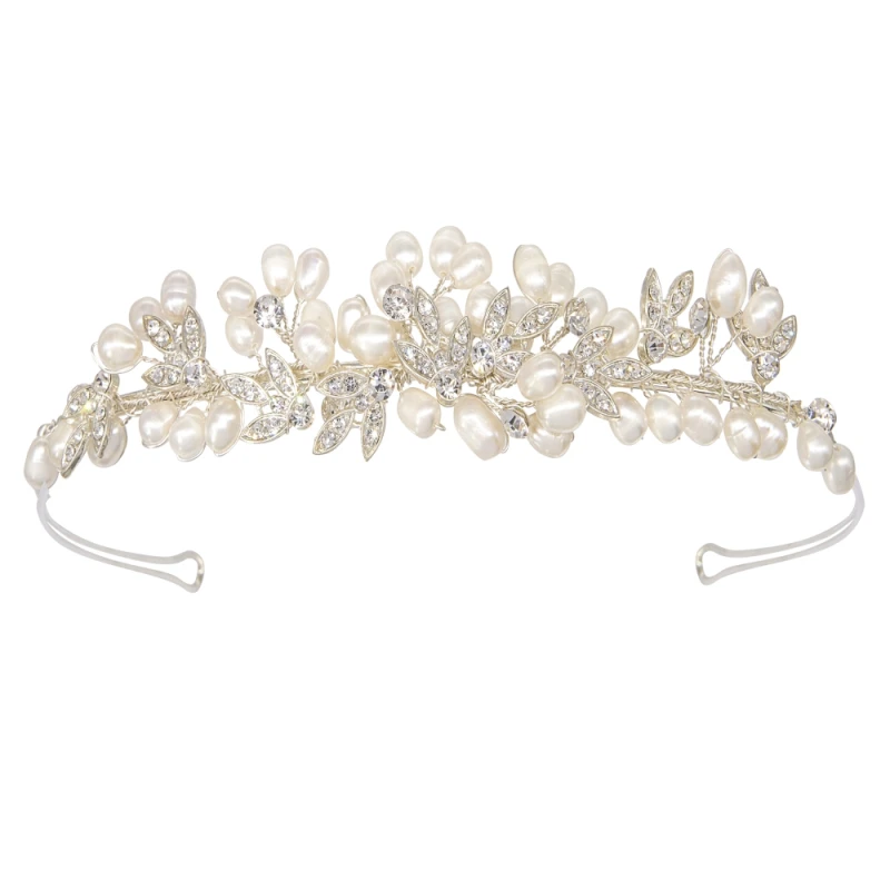 Athena Collection Eternally Pearl Tiara. Such a pretty and versatile hairpiece. A combination of shimmering freshwater pearls interwoven with sparkling crystals giving a floral effect tiara on a silver finish band!