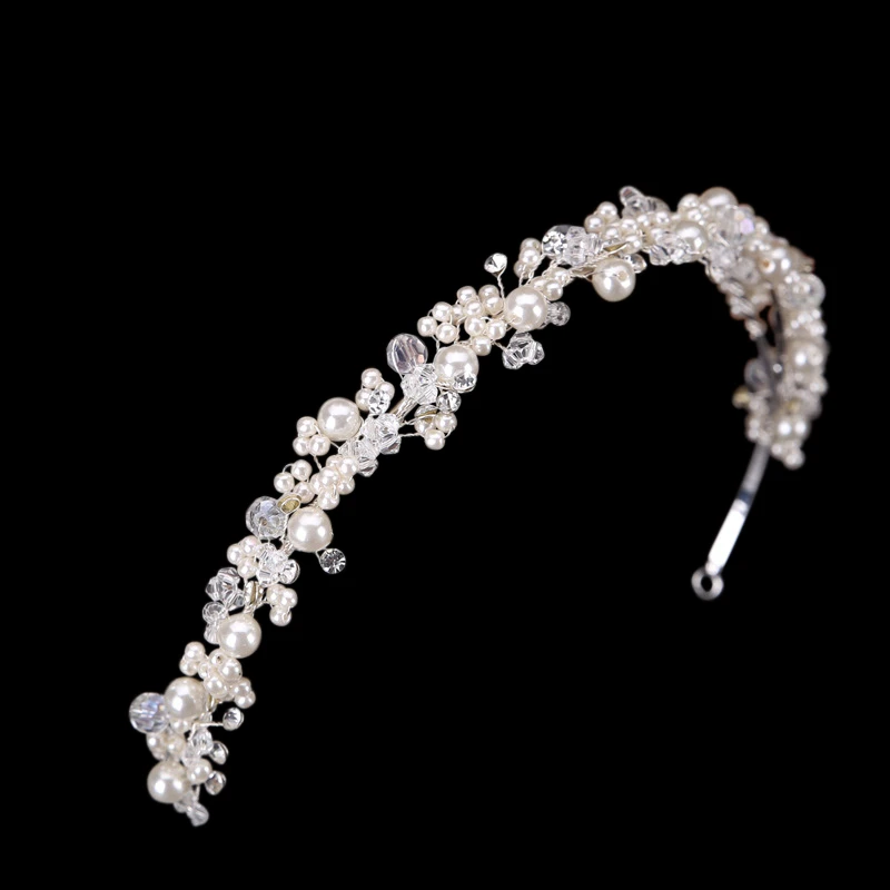 Athena Pearl Cluster Headband. This classic silver finish wedding band embellished with clusters of ivory pearls and shimmering beads for a subtle finishing touch!