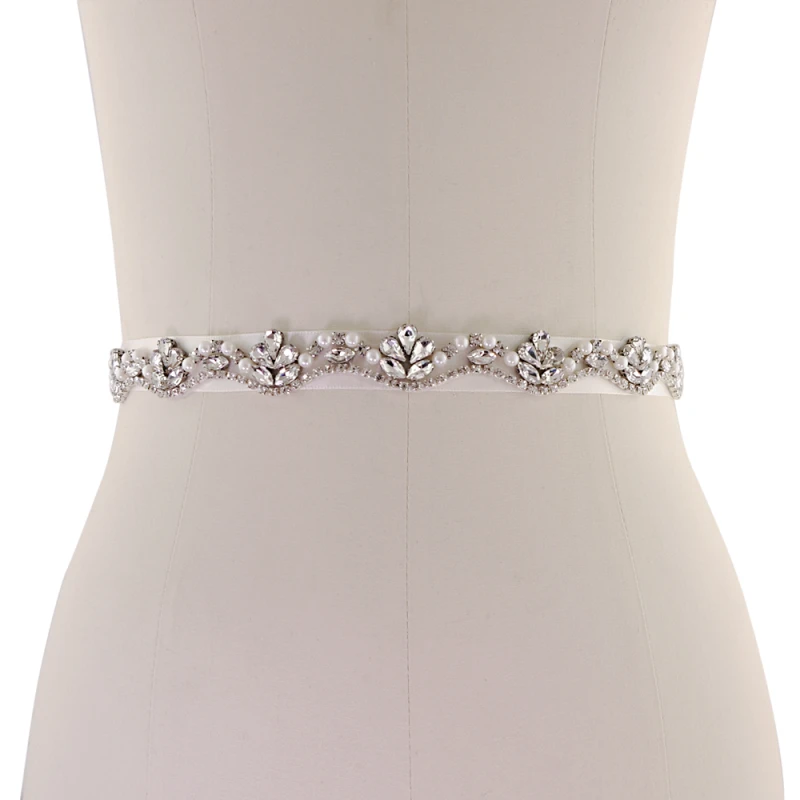 Athena Collection Starlet Bridal Belt. Perfect to add that sparkling accent to any wedding gown! Starlet is a vintage inspired, simulated ivory pearl and clear crystal embellishments complete this truly beautiful ivory satin free sizebelt in every way!