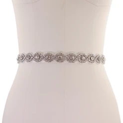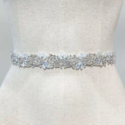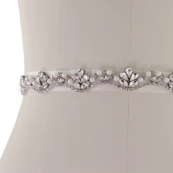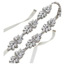 Athena Collection – Starlet Crystal Belt. A beautiful statement sash belt with amazing sparkle and shine. Clear crystals on a wide Ivory satin ribbon enhance this free size Vintage style belt with a sparkle!