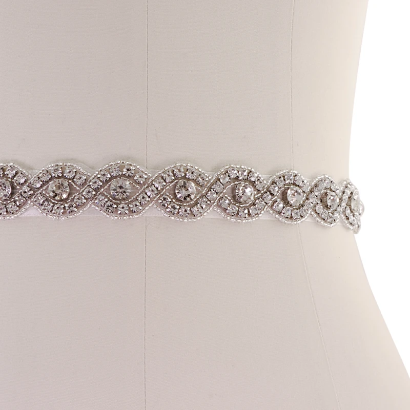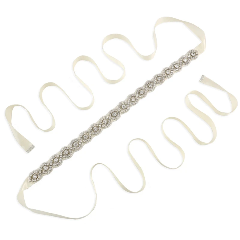 Athena Vintage Inspired Bridal Belt . Add a touch of sparkle with this stunning, slim wedding sash belt to any wedding gown! Clear crystals sparkle on an ivory satin ribbon giving a chic and truly gorgeous belt!