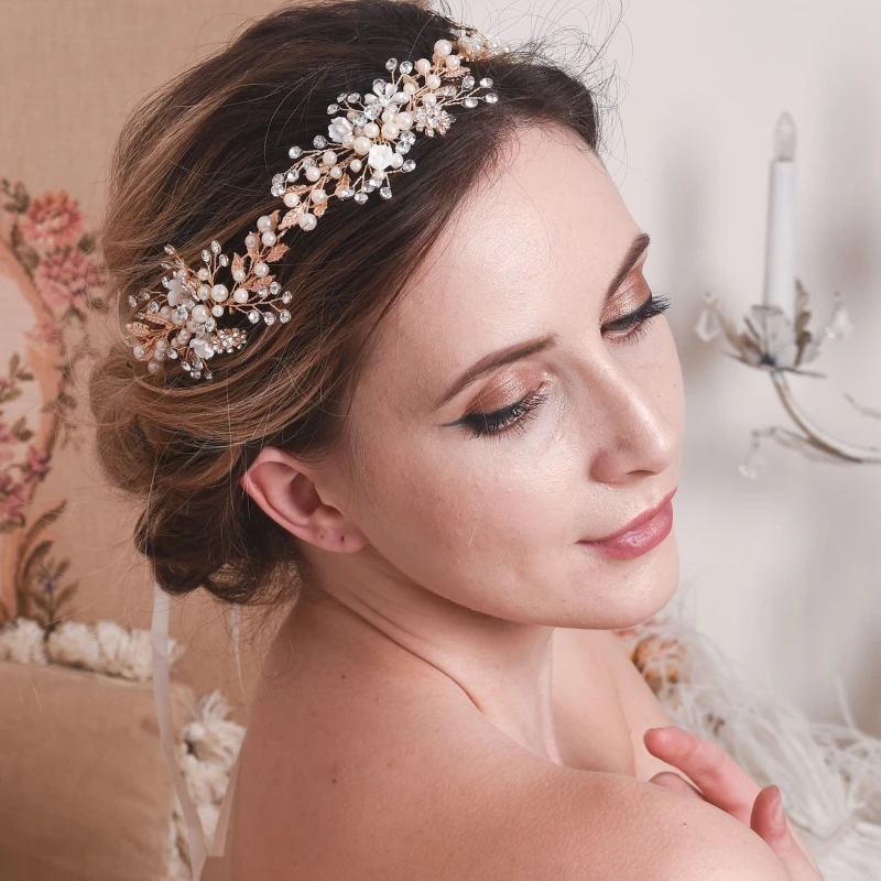Enchanting silver hair vine – intricately designed with attention to details – embellished with simulated ivory pearls, pearl petalled flowers on a silver finish flexible wire. Complete with a light ivory satin ribbon. Size is 35cm long approx!