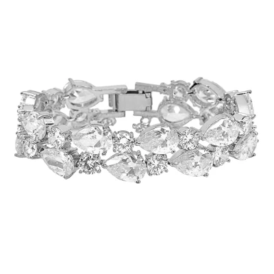 Crystal Extravagance bracelet in Silver. A beautiful unique, cluster style bracelet which will complement almost any bridal look. Designed to be a statement piece with simply stunning cubic zirconia clear crystals on a sparkly high quality silver finish!