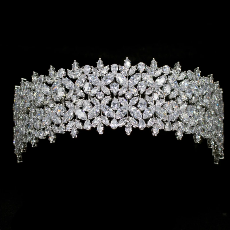 CZ Collection – Bejewelled Deco headpiece embellished with Pear cut crystals form an illusionary band of flowers and leaves all assembled to create this vintage style headpiece on a silver finish. An enchanting art deco inspired headpiece for the bride who wants a perfectly glamourous look!