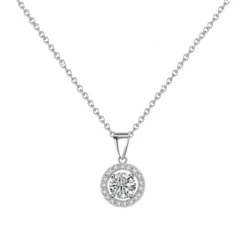 CZ collection Chic Crystal Pendant Necklace. Classic crystal necklace set in a timeless design with clear AAA cubic zirconia crystals on a silver plated finish! A pretty and simple Art Deco inspired design with a subtle shimmer!