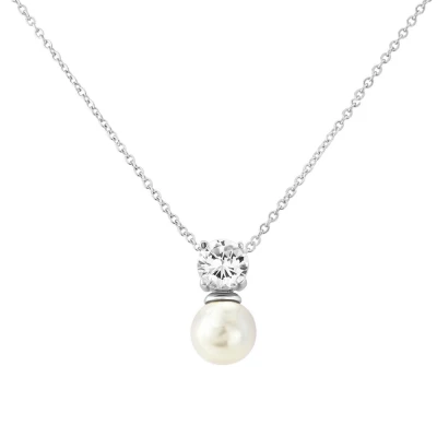 CZ collection Delicate Pearl and cubic zirconia necklace in Silver – Elegantly designed with clear cubic zirconia crystals and a solitaire pearl pendant. A pretty and simple design with a lovely sparkle!