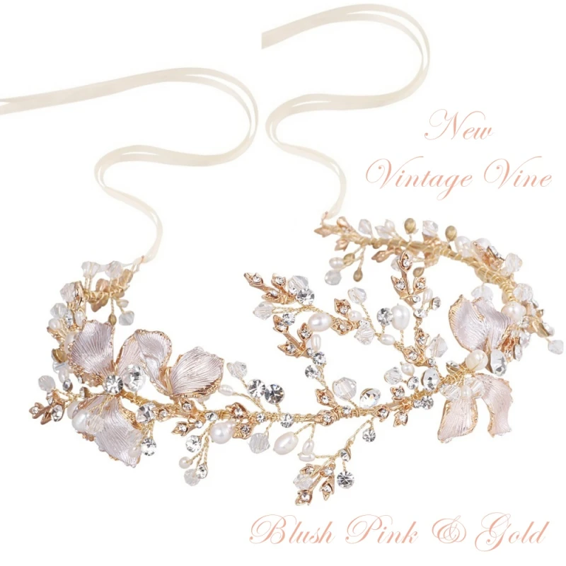Enchanting blush pink hair vine – intricately designed with attention to details – embellished with freshwater ivory pearls, blush pink crystals and hand painted blush pink flowers on a gold finish flexible wire. Complete with white ribbon. Size is 32cm long and 5cm wide at the widest point.