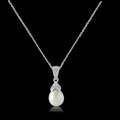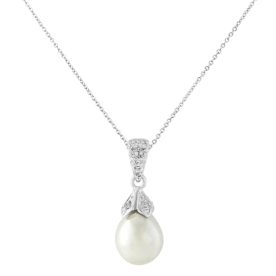 CZ collection Classic Pearl cubic zirconia necklace in Silver – Elegantly designed with clear cubic zirconia crystals in a petal inspired design around a solitaire pearl pendant. A pretty and simple design with a lovely sparkle!