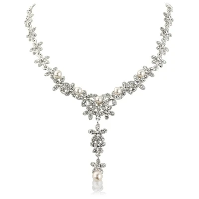 Athena Cubic Zirconia Collection Crystal Pearls Bridal Necklace. A glamorous and intricate design with ivory pearls set amongst swarovski crystals on a sparkly silver tone finish!