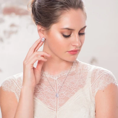 The Dainty Gem Necklace set is the perfect sparkling addition to almost any type of wedding gown! Perfect for bridesmaids and brides alike!,