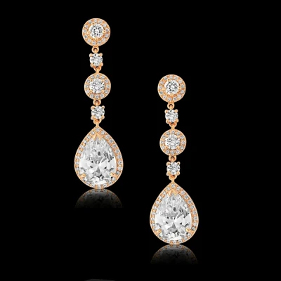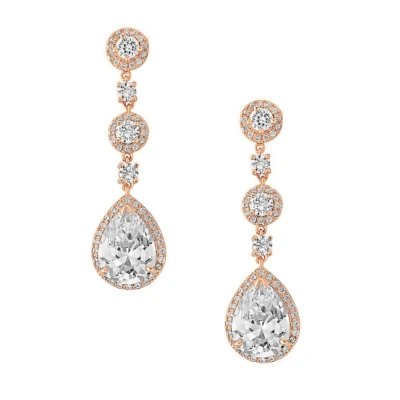 Athena Cubic Zirconia Collection Eternally Crystal Rose Gold Earrings. Simple and glamourous chandelier style earrings with cz crystals on a rose gold plated finish!
