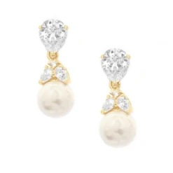Athena Cubic Zirconia Collection Graceful Pearl Earrings in Gold. As the name suggests these are graceful and chic pearl earrings made with a simulated ivory pearl on a gold plated finish!