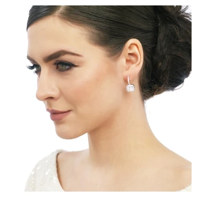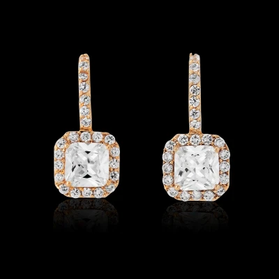 Athena Cubic Zirconia Collection Timeless Beauty Silver Earrings in rose gold. A classic rectangular design with high quality cz crystals on a gold plated finish!