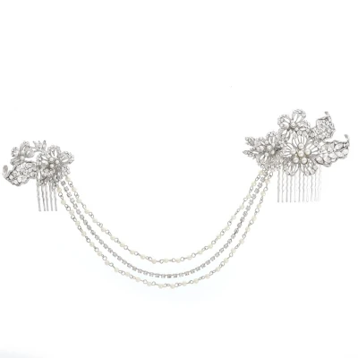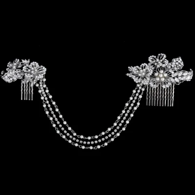 The Elite Collection Starlet luxurious headpiece is a true statement hair vine designed to be worn across the forehead! Two cz crystal and pearl combs are interlinked with three glamorous chains of crystals and petite simulated ivory pearls to create a truly glamorous look!