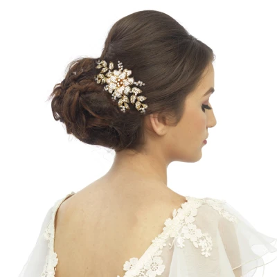 Elite Collection – Vintage Floral Headpiece embellished with tiny simulated ivory pearls finished with an antique gold plate. An enchanting vintage inspired headpiece for the bride who also wants a perfectly glamourous look!