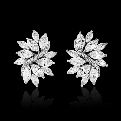 Athena Eternally Chic Earrings in silver. Crystal earrings in a chic elegant design with clear crystals on a rhodium plated finish! A simple and classic, delicate leaf design with high quality cz crystals on a rhodium plated finish!Â