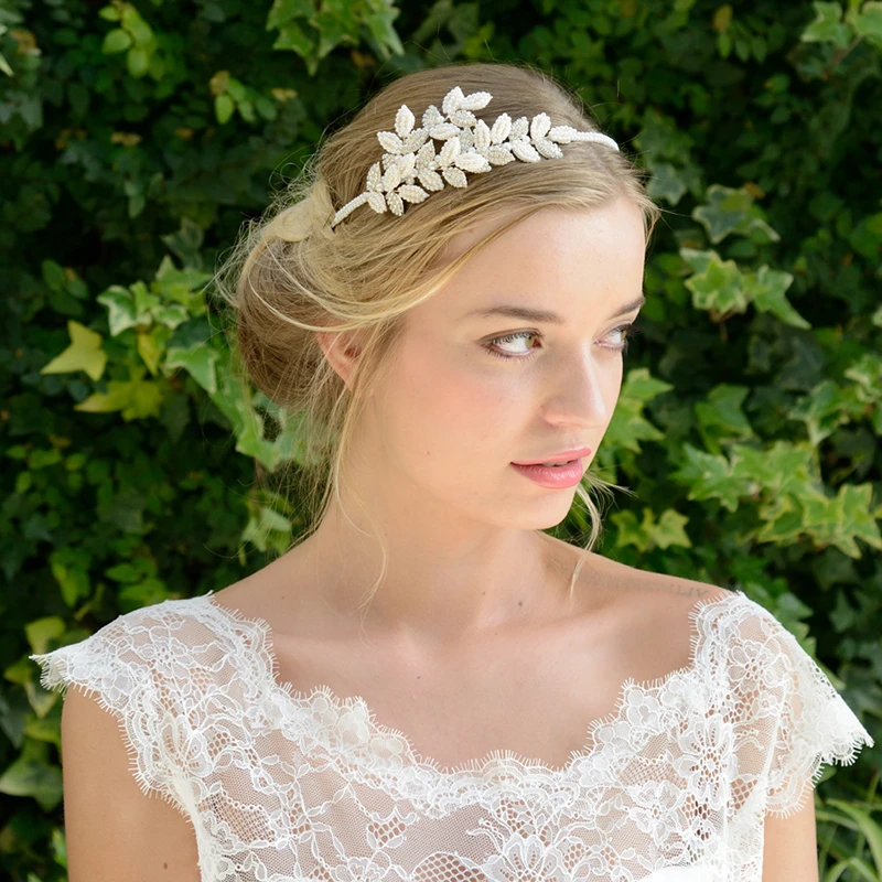 Ivory and Co Alberta vintage chic pearl headband. A stunningly individual style for the bride who wants a touch of vintage with a feminine feel – a cute ivory pearl headpiece with rows of pearls ont he headband, as clusters of leaves and accented with crystal leaves for a touch of sparkle amongst the pearl lustre!