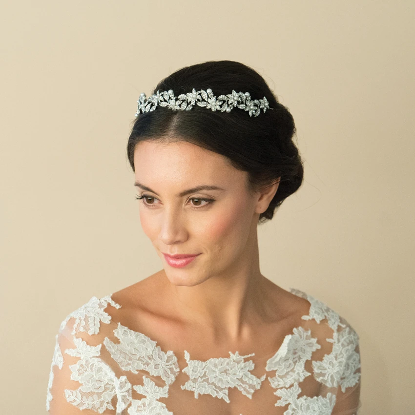 Amarylis garland headpiece by Ivory and Co is perfect for a garden inspired wedding or a princess-style look for a rustic reception with intricate, trailing leaves and floral motifs.