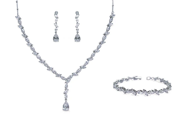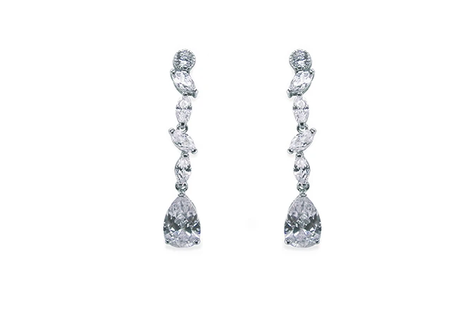 Ivory and Co Andorra earrings are truly dazzling. Marquise cut man-made diamonds are set in a design and finished with a cut pear at the bottom. Sophisticated and sparkling.