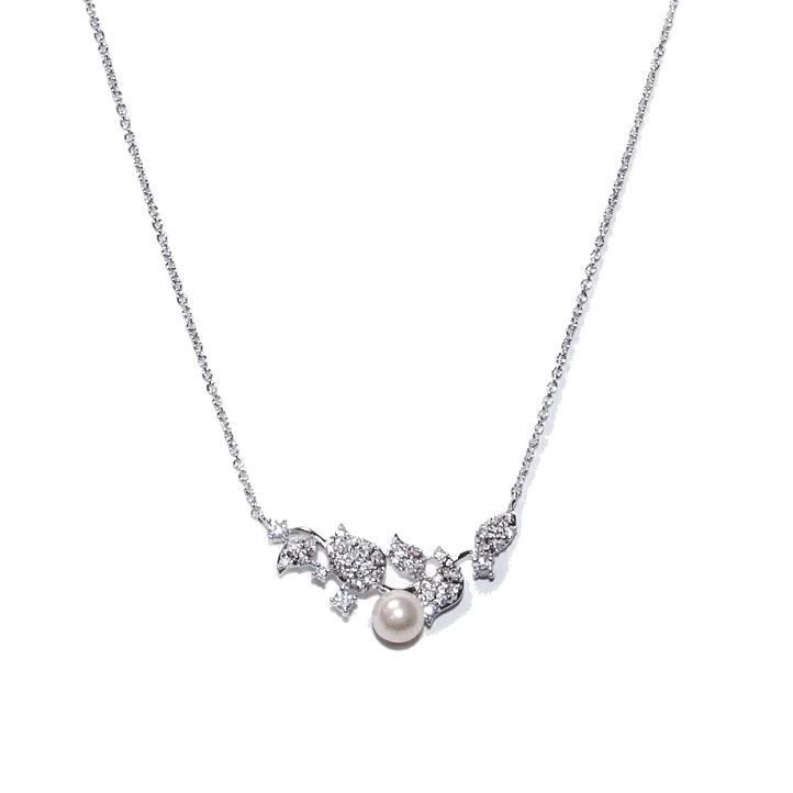 Ivory and Co Imperial Aphrodite Pearl and Crystal Necklace. Beautiful, necklace / pendant with sculptured leaf design studded with Swarovski crystals and finished with a lustrous Ivory pearl!