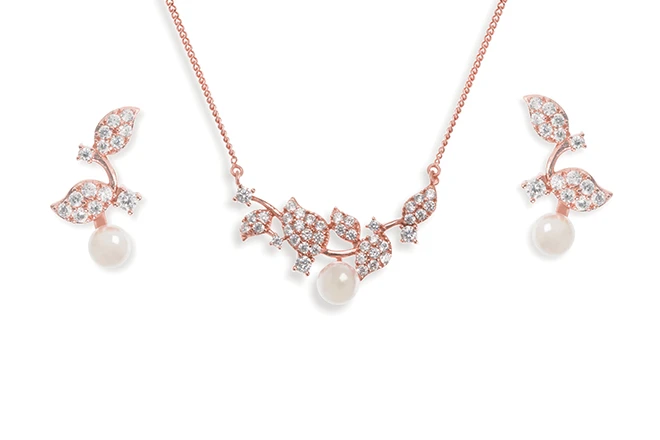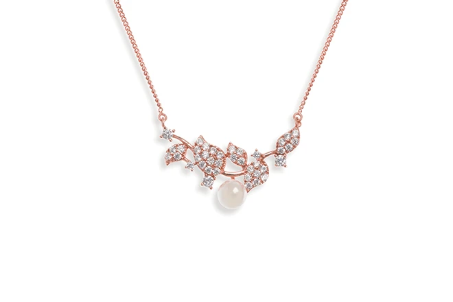 Ivory and Co Aphrodite Rose Pendant. This is a beautiful Pearl and Crystal Necklace. Beautiful, necklace / pendant with sculptured leaf design studded with Swarovski crystals and finished with a lustrous Ivory pearl. Perfect romantic for those brides wanting a subtle necklace that is not too small to be noticed!