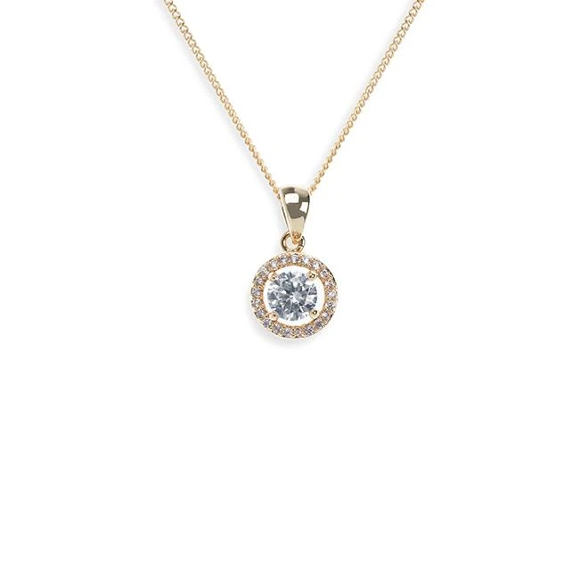 Ivory and Co Balmoral Gold Pendant – A really eyecatching pendant – a dazzling solitaire stone surrounded by tiny pave stones in an elegant setting. Perfect for brides who like a classic look with plenty of sparkle!
