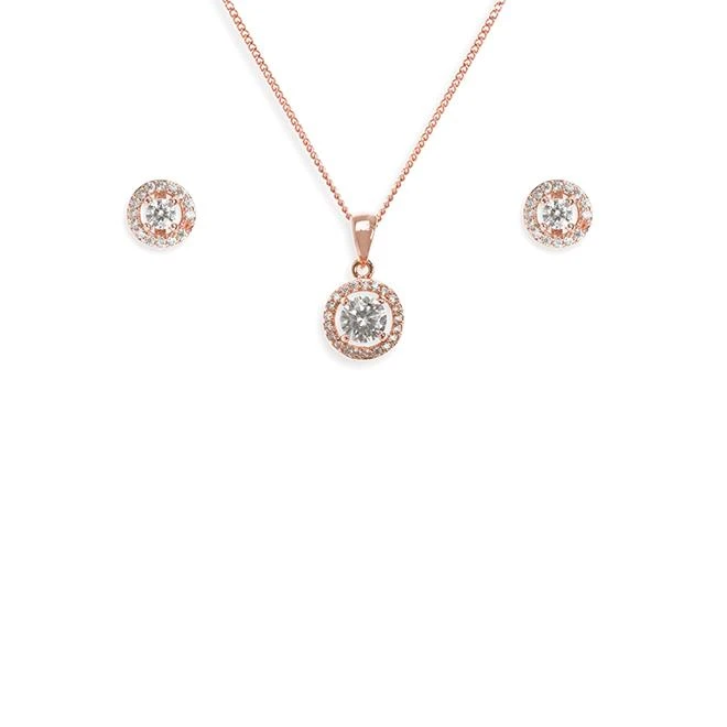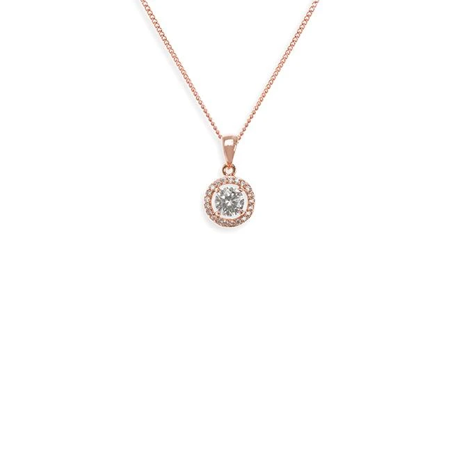 Ivory and Co Balmoral Rose Gold Pendant – A really eyecatching pendant – a dazzling solitaire stone surrounded by tiny pave stones in an elegant setting. Perfect for brides who like a classic look with plenty of sparkle!