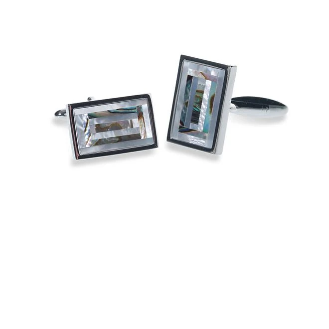 Ivory and Co Jewellery – Balthazar Cufflinks. A modern and contemporary set of cufflinks that suit any wedding style with a mixture of mother of pearl and abalone mounted into a rhodium rectangular setting!