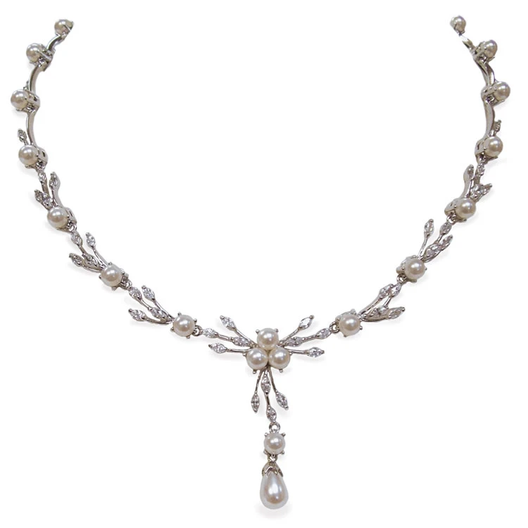 Belgravia cubic zirconia and pearl necklace by Ivory and Co. An ultra sophisticated piece of bridal jewellery designed with clusters of pearls offset with sprays of sparkling cubic zirconia!