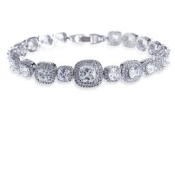 Ivory and Co Belize Bracelet. A fantastic bestseller due to this being such an elegant and classic piece of jewellery. Dazzling princess cut stones are surrounded by tiny set pave stones. Perfect for brides looking for traditional and classic jewellery!