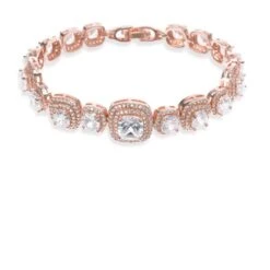 Ivory and Co Belize Rose Gold Bracelet. A fantastic bestseller due to this being such an elegant and classic piece of jewellery. Dazzling princess cut stones are surrounded by tiny set pave stones. Perfect for brides looking for traditional and classic jewellery!
