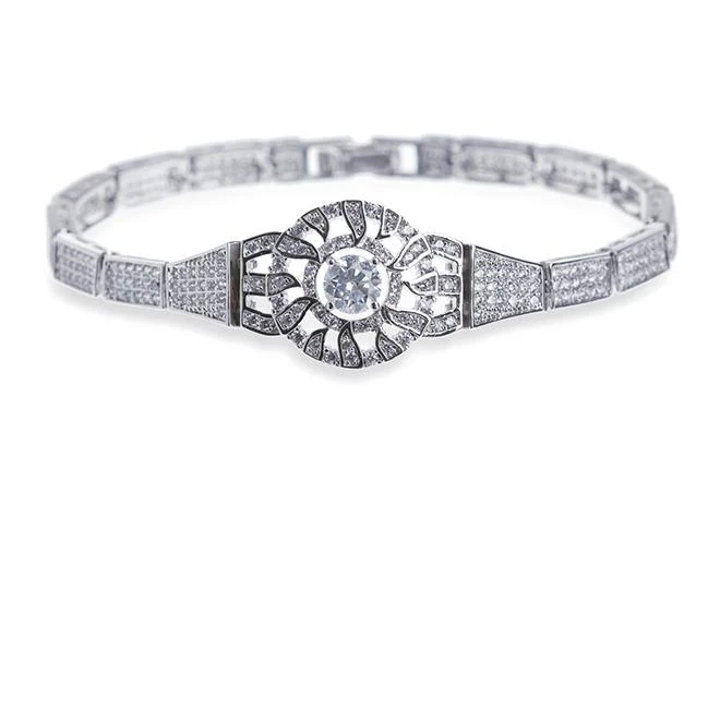 Ivory and Co Carlton Bracelet. A really gorgeous bracelet inspired by the jewellery of the Jazz Age. This bracelet would particularly suit classic or 1920’s inspired wedding gowns and will certainly add a stunning sparkle for any bride on their wedding day!