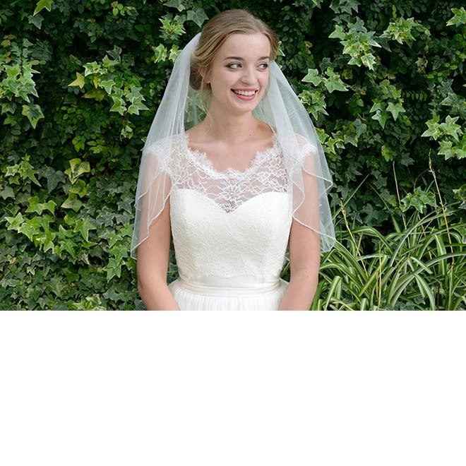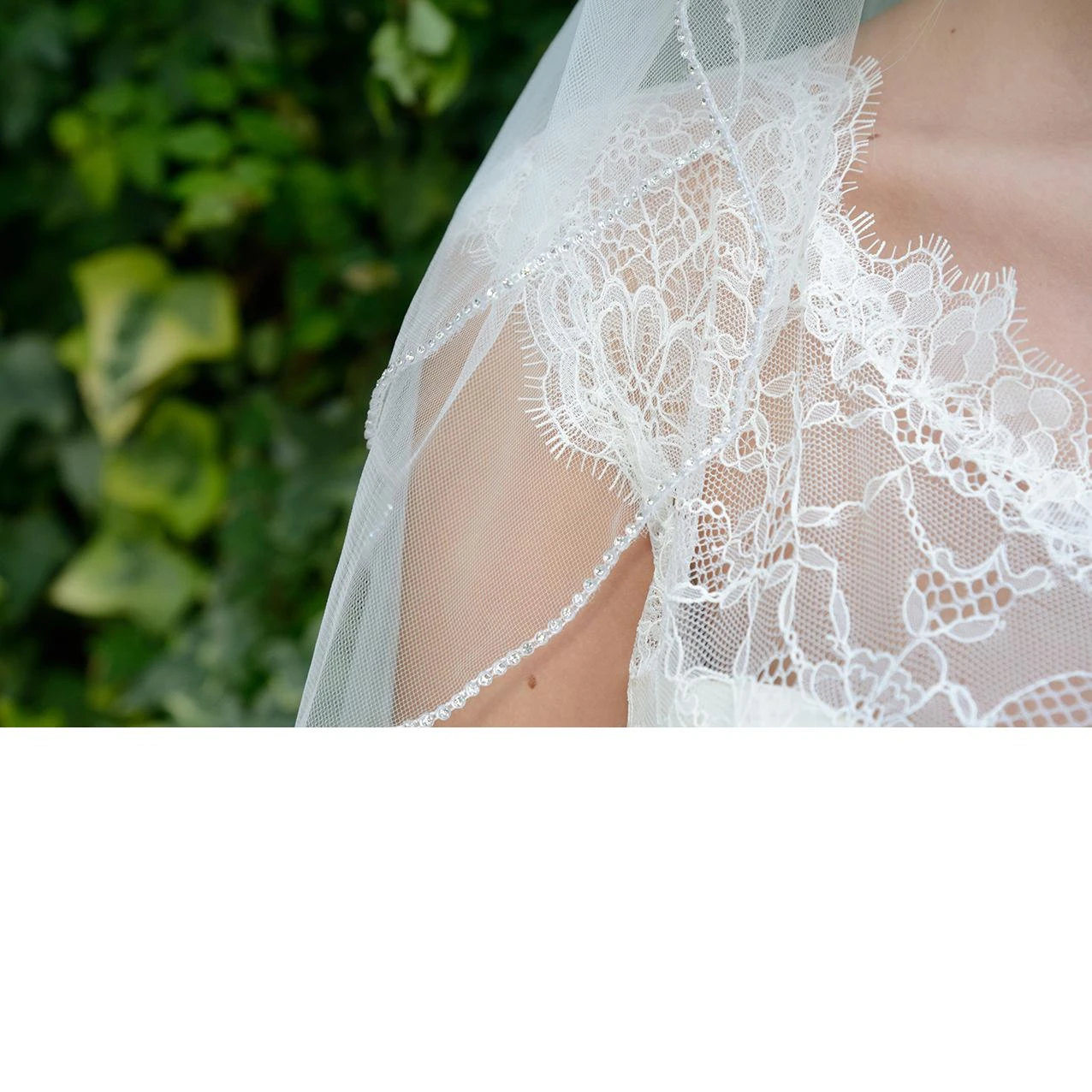 Ivory and Co Chelsea veil made with high quality luxury extra sheer tulle hand-embroidered with sparkling swarovski crystals edges.