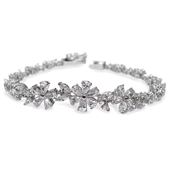 Cherish bracelet by Ivory and Co made with cubic zirconia and swarovski crystals. A unique, modern bracelet with solid crystal florette design finished with cubic zirconia encrusted clasp.