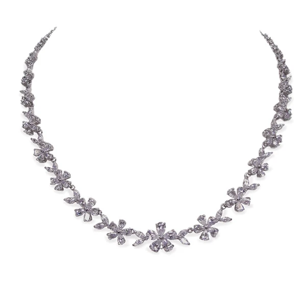 Cherish necklace by Ivory and Co made using cubic zirconia and swarovski crystals. A unique floral detail necklace made with solid crystal florettes. A stylish, modern finishing touch for any bridal outfit finished with a diamante studded clasp!