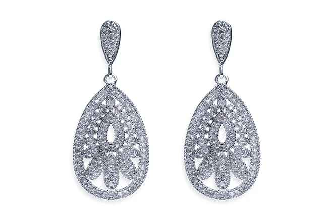 Ivory and Co Cosmopolitan Earrings. This design is made up of tiny pave set stones and is infuenced by the intricate patterns of the 20’s and 30’s. A gorgeous piece of jewellery for brides wanting a delicate and yet still exclusive look!