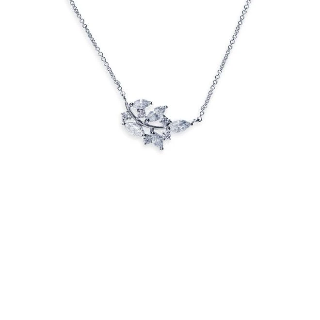 Ivory and Co Cypress Pendant. This pendant is delicate and pretty. Solitaire and marquise cut man-made diamonds are set in a design of delicate leaves. Amazingly sparkling!