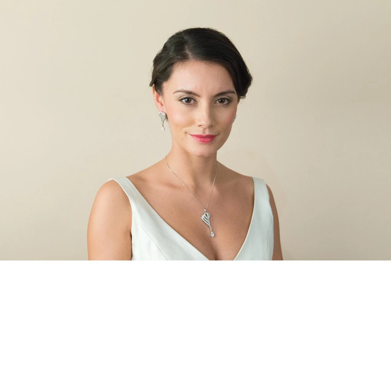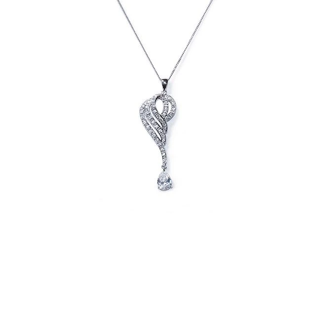 Ivory and Co Devotion Pendant. A striking and equally stunning piece of jewellery. Devotion looks stunning when worn with high end designer wedding dresses. The design looks especially attractive with V shape and sweetheart necklines!
