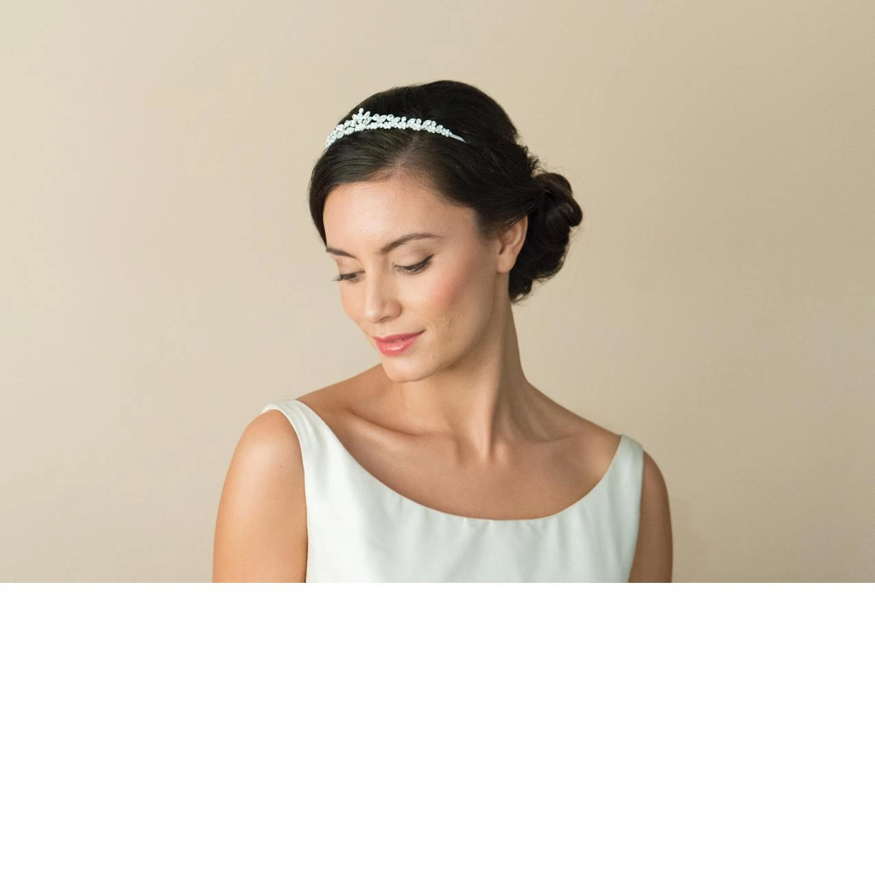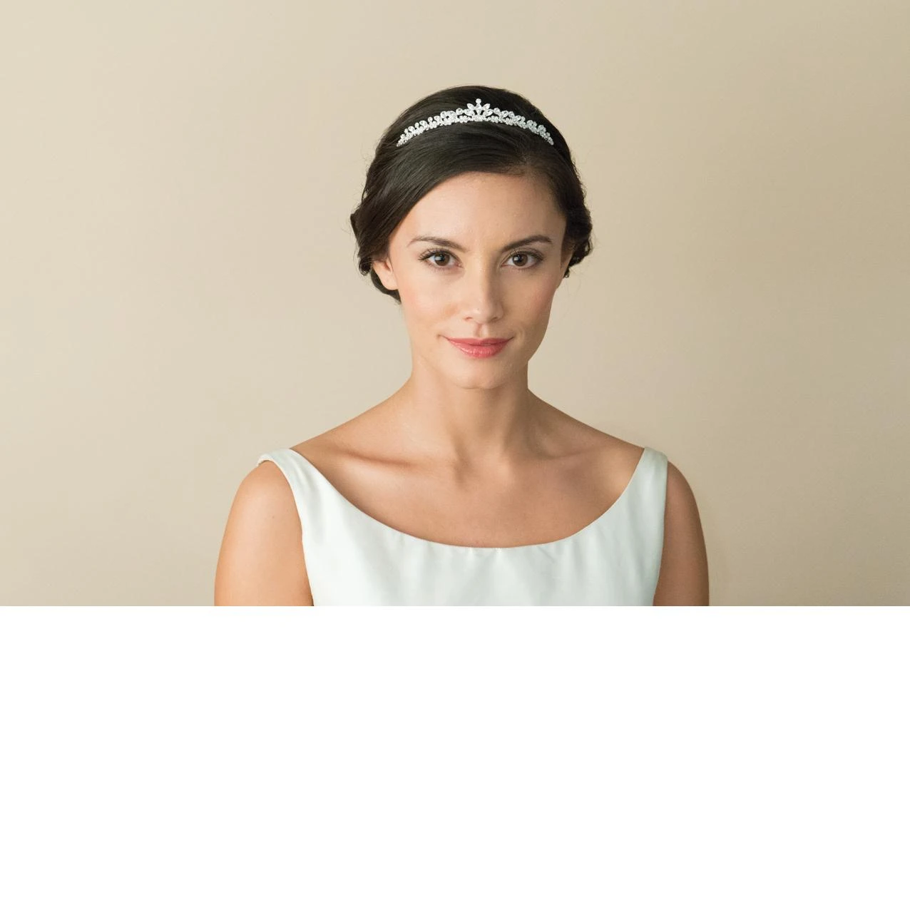 Emily,is a tiara that looks wonderful with short hair or hair that has been put up in a sophisticated style and is perfect for any wedding theme as that finishing touch!