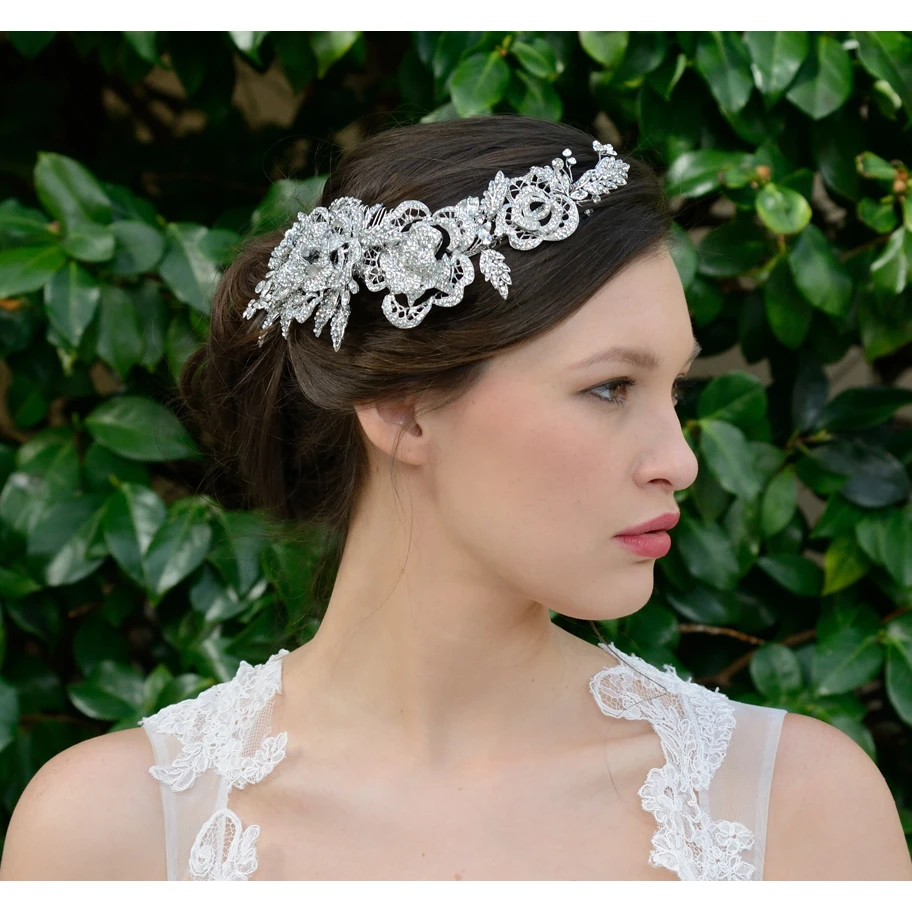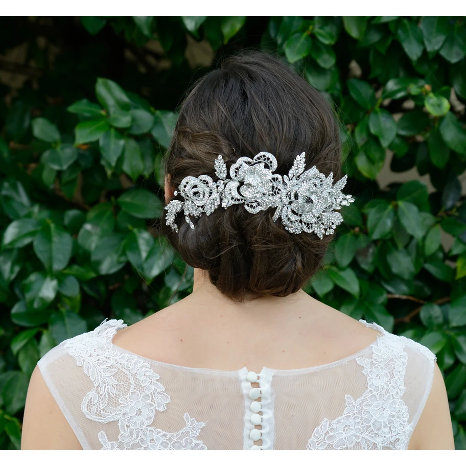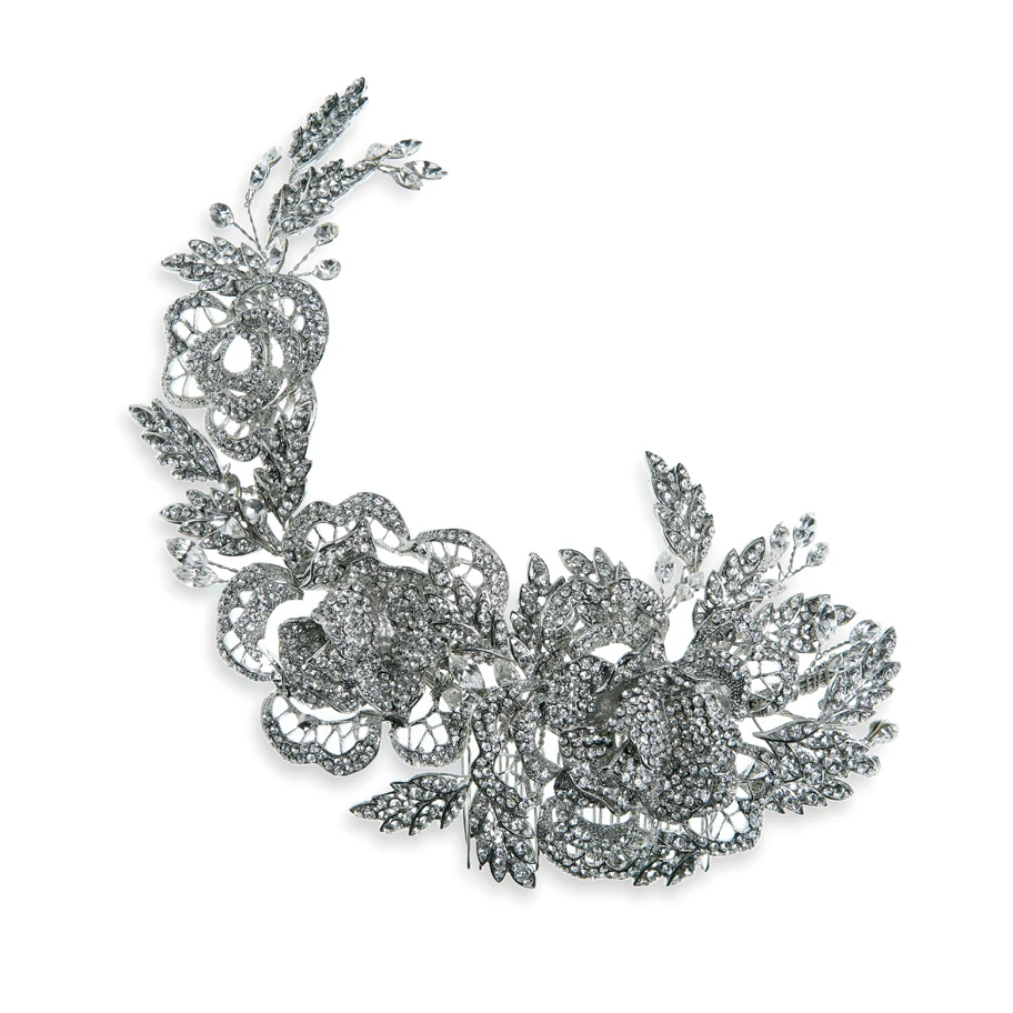 Ivory and Co Fantasia. A unique comb with a traditional shape, made using solitaire cut stones in an intrictae floral pattern