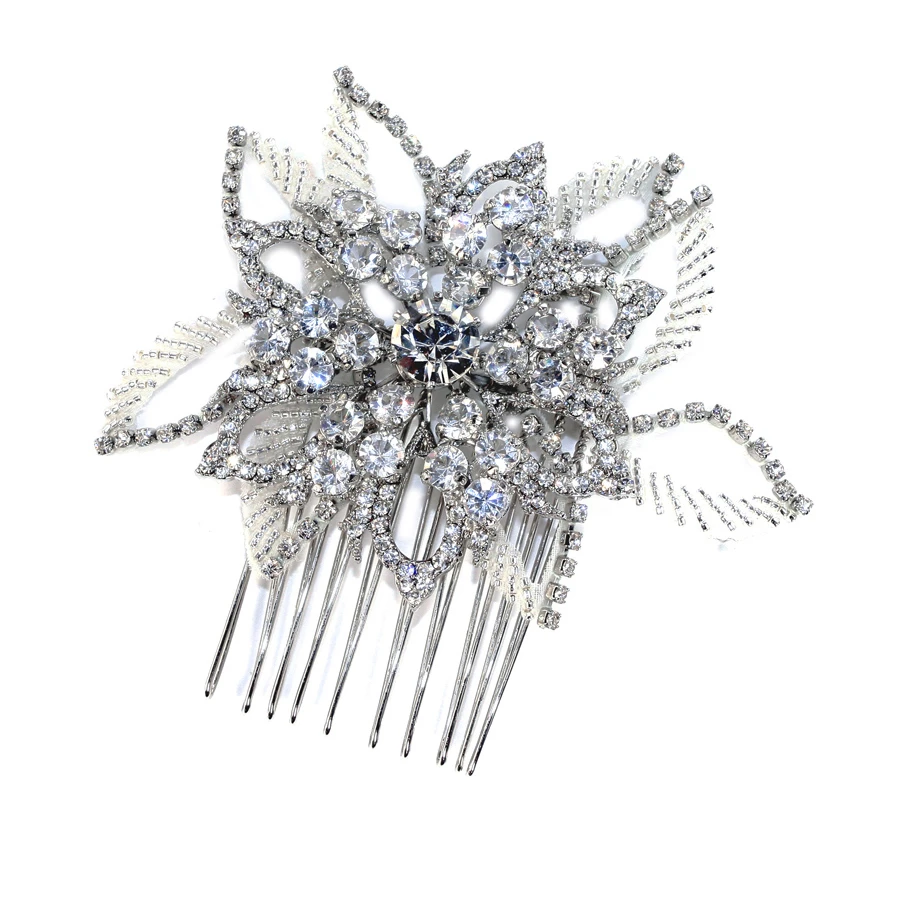 Ivory and Co Georgia beaded bridal comb. A luxury, Swarovski crystal and beaded comb with bold starburst flower and leaf design which will complement almost any style of bridal gown!