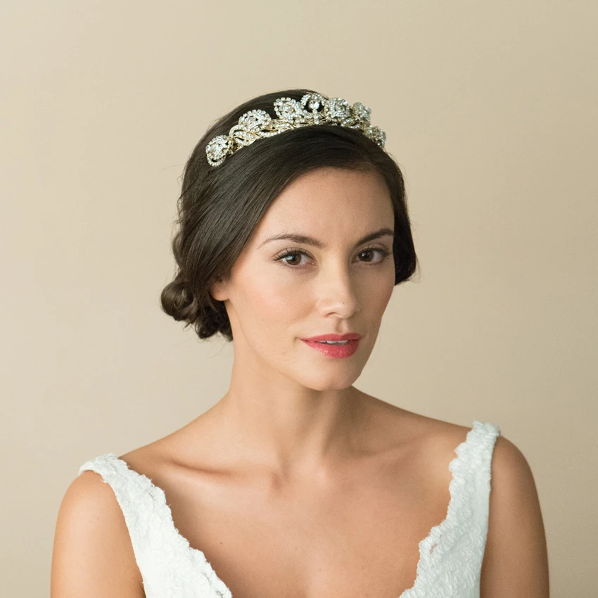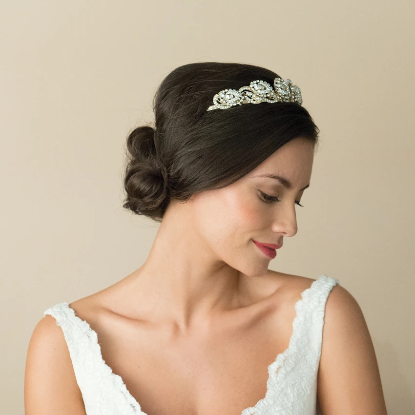 Ivory and Co Godiva gold vintage tiara. An amazing gold headpiece for the bride who needs to create a regal, luxury look with a deep set design of rows of sparkling Swarovski crystals and scroll inspired motifs!