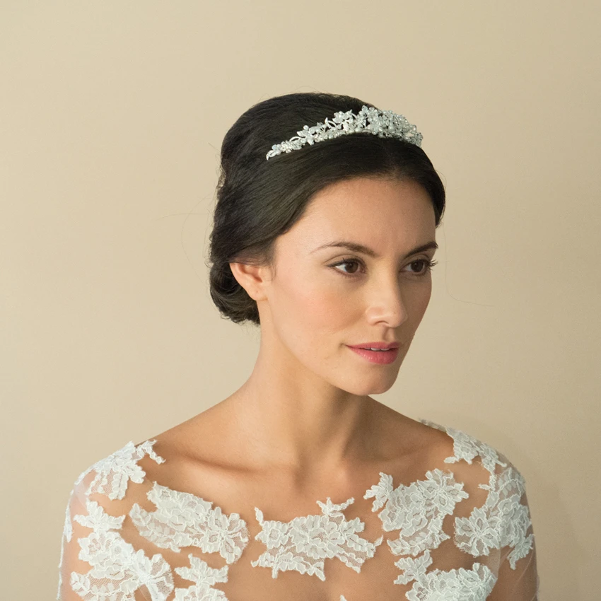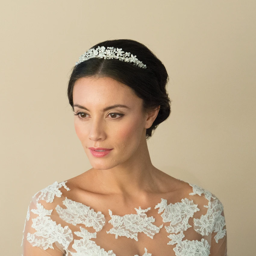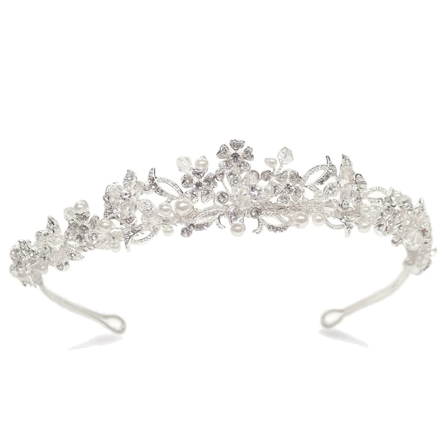 Hyacinth tiara is perfect for a traditional, English Rose inspired bridal look with pretty pearls and a subtle shimmer!