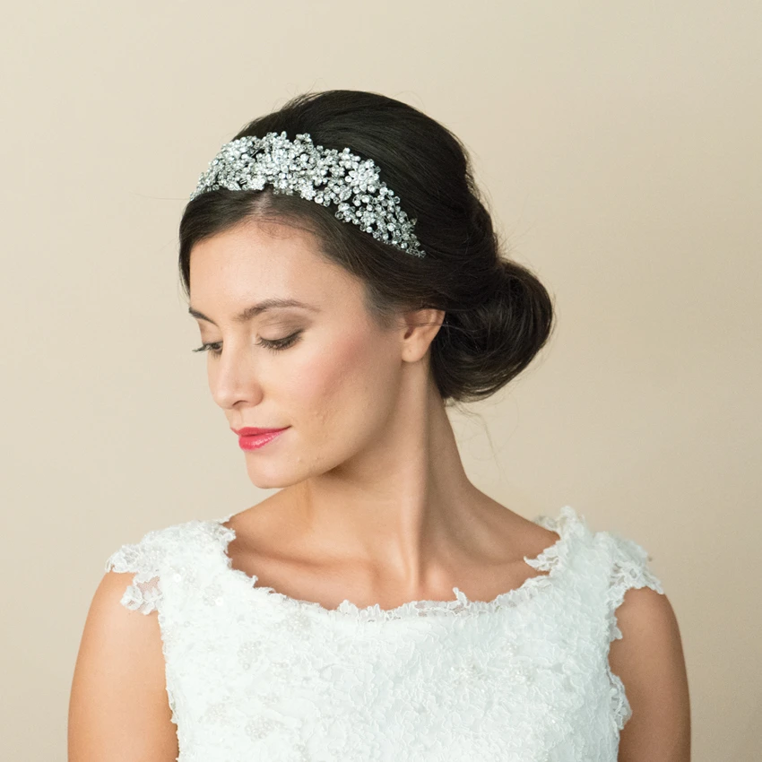 Jade crystal wedding headpiece is so versatile it can be shaped around a bun, as a tiara, headband or even as a forehead piece β will complement almost any style of gown and the ideal focal point to build your bridal look around!